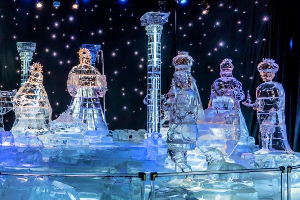 It’s a walk-through art display kept at 9°F/ -12°C, featuring large than life ice carved sculptures.